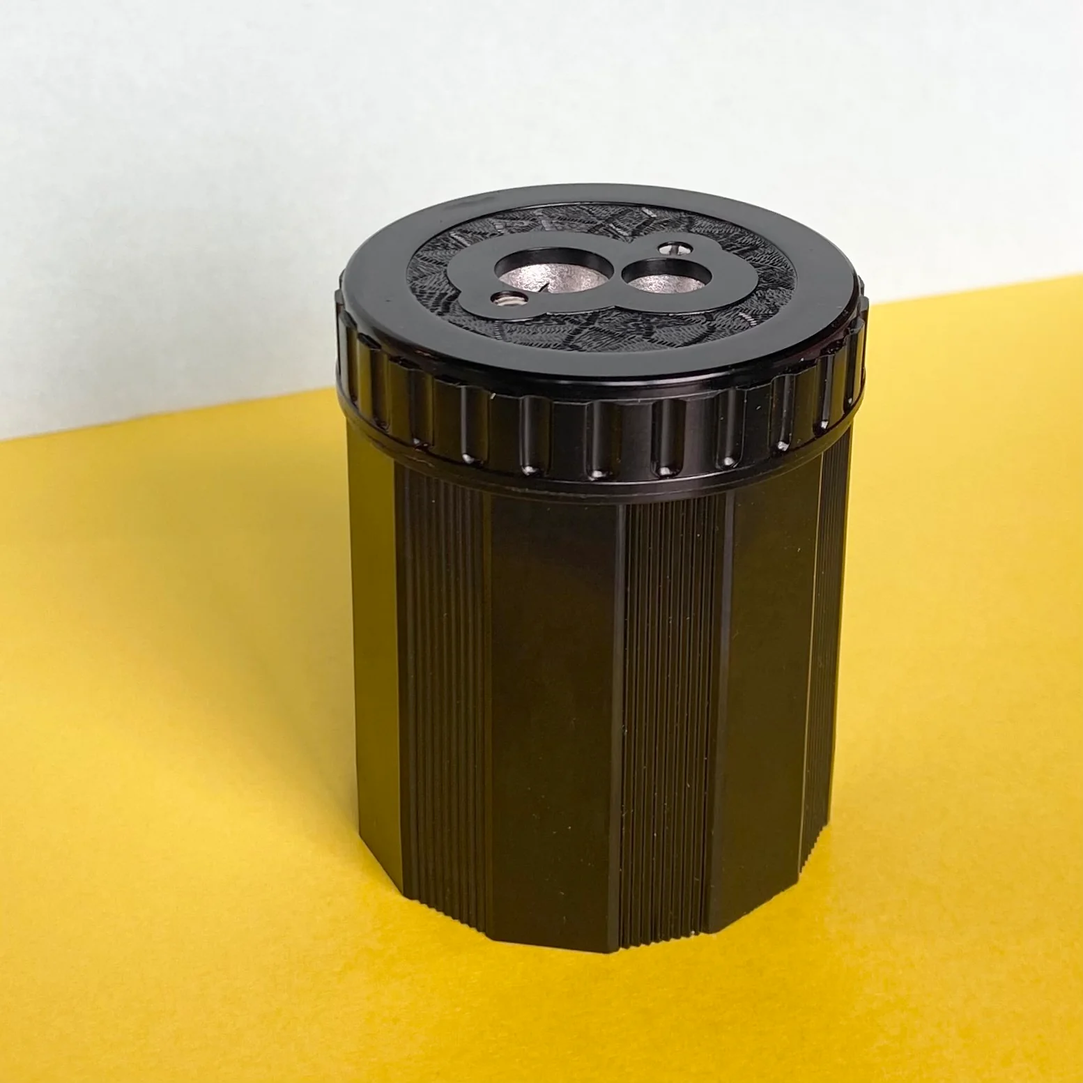 THE Classic box sharpener for all your pencils and crayons. In production since 1936. The screw lid has a dual metal pencil/crayon sharpener attached to it so all the shavings fall conveniently straight into the box. It's super neat, super durable and it looks great.
