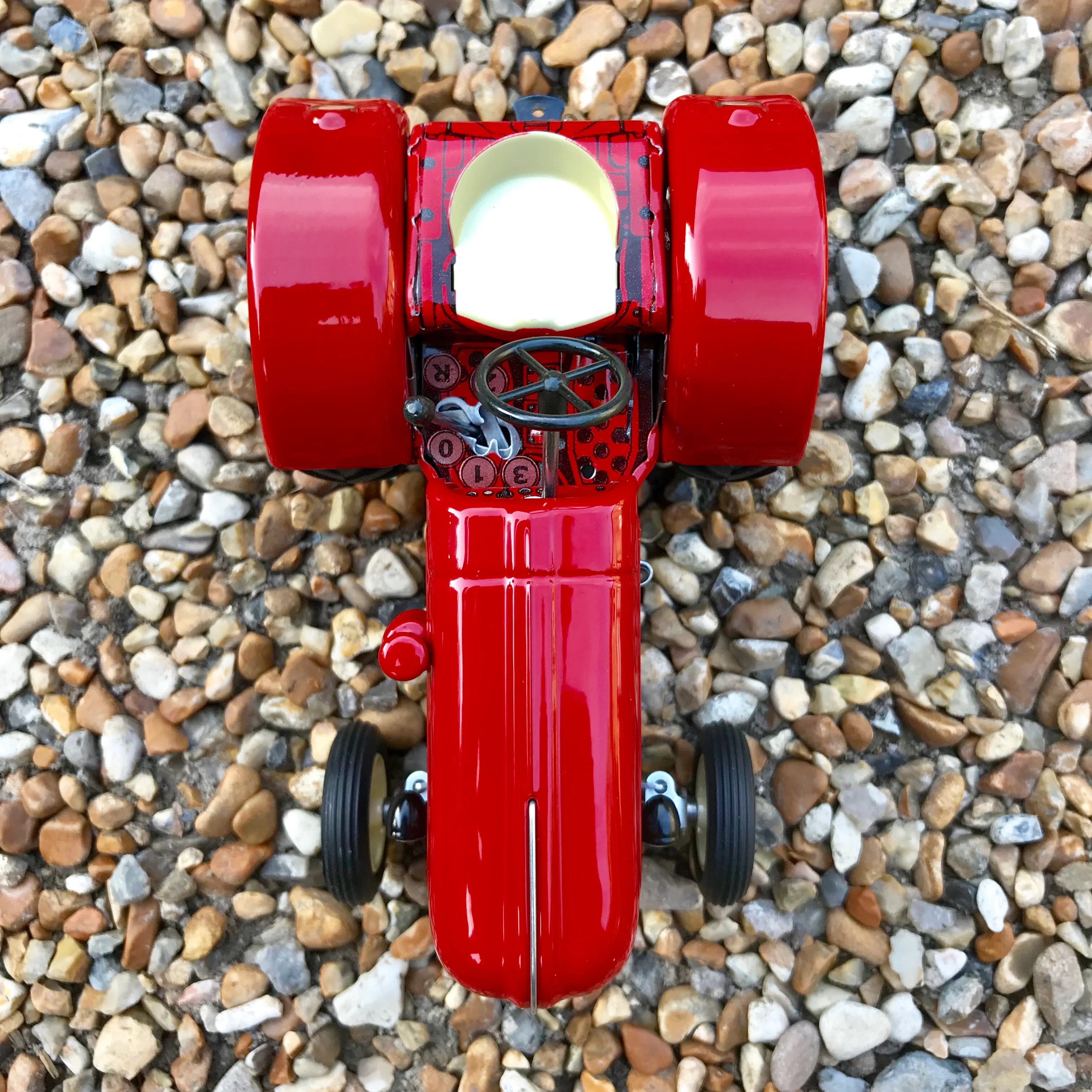 This superb 1:25 scale tinplate wind-up tractor has a fully functional gear box with three forwards AND one reverse gear, yes, you heard that correctly! It's really quite an impressive machine. The perfect present for any budding farmer big or small.